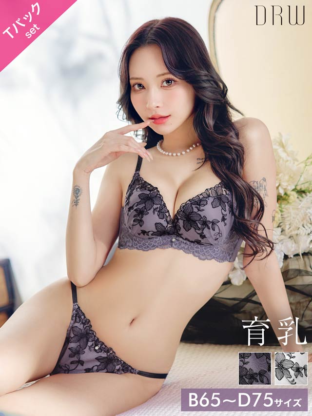 12/2再販!ダスティブルームエンブロイダリー育乳脇高ブラジャー&バック透けフルバックショーツ[激売れ]