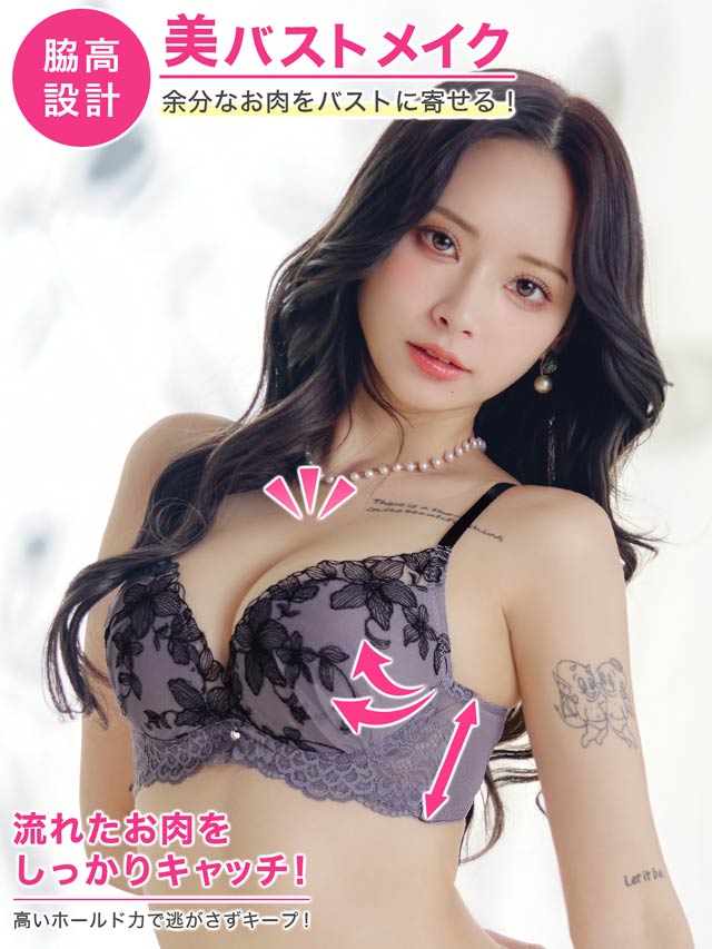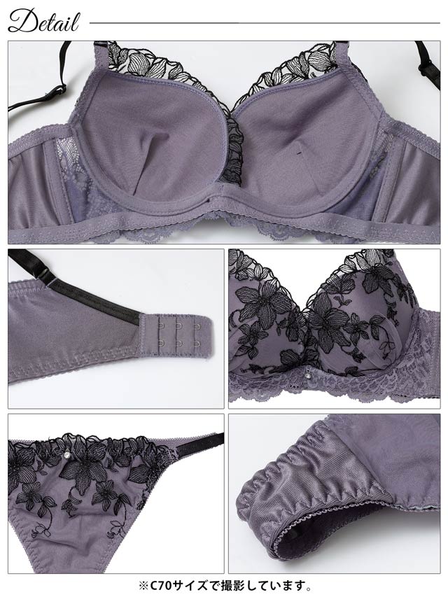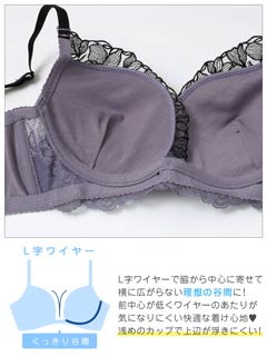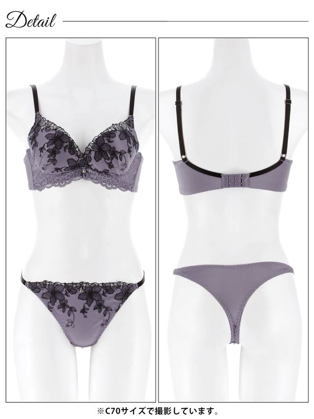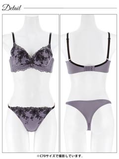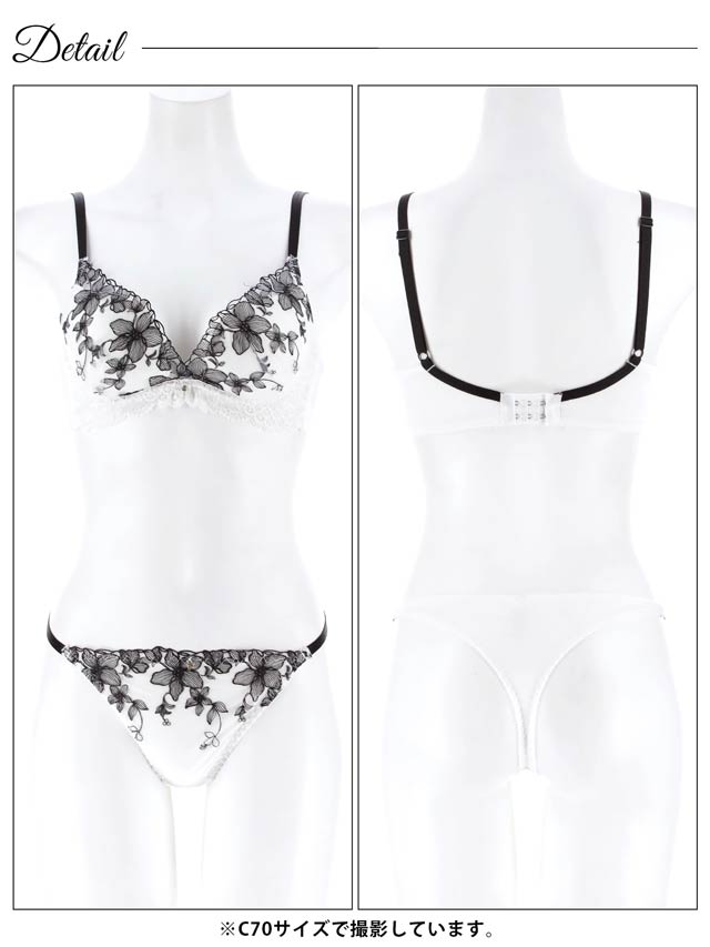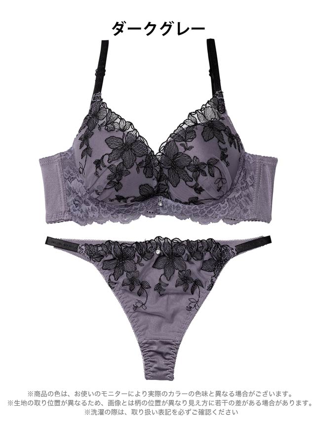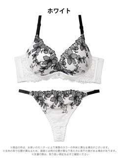 ダスティブルームエンブロイダリー育乳脇高ブラジャー&バック透けフルバックショーツ