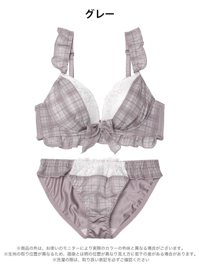 11/12新作!シュクレチェックシフォンブラジャー&フルバックショーツ[激売れ]