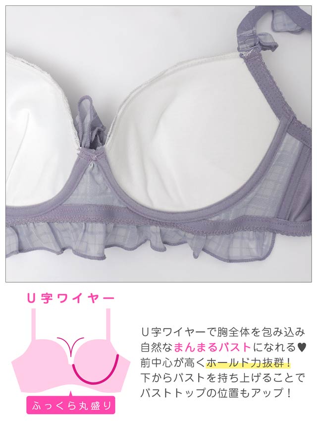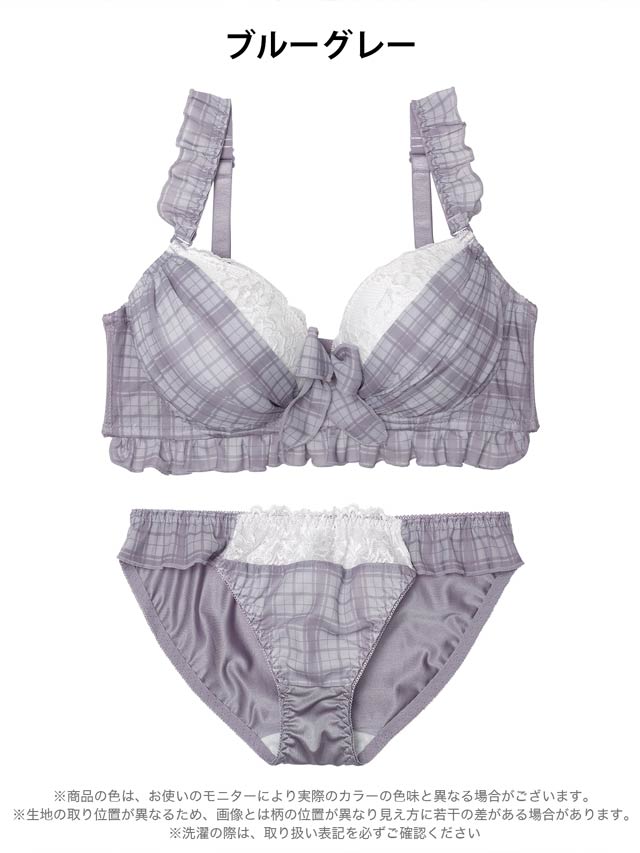 11/12新作!【EFサイズ】シュクレチェックシフォンブラジャー&フルバックショーツ[大人気]