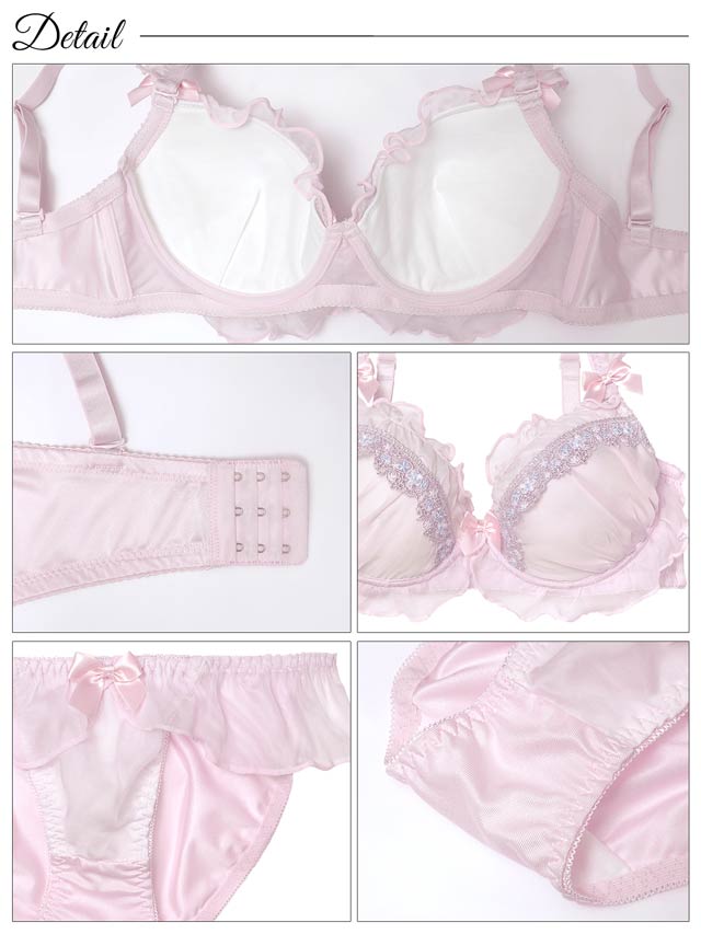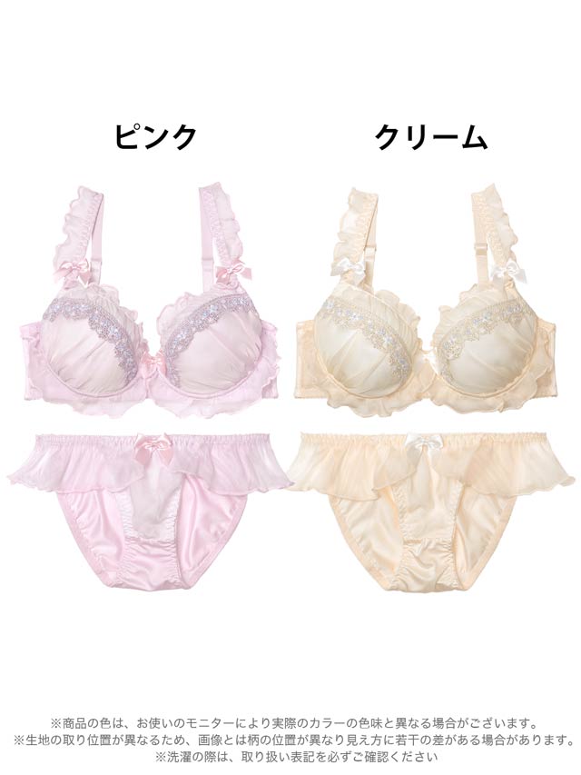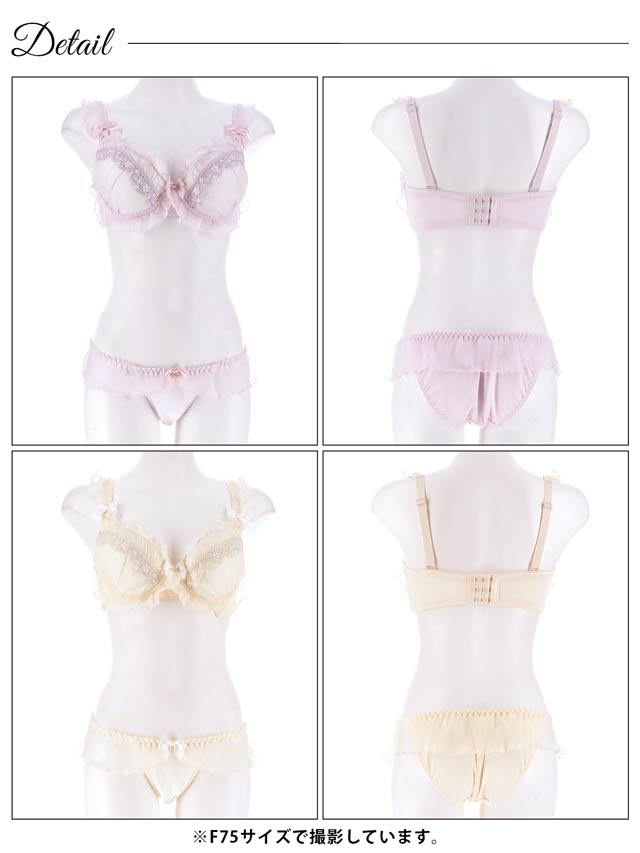 10/29新作!【EFサイズ】スウィートフリルエンブロイダリーブラジャー&フルバックショーツ[大人気]