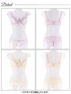 ダスティブルームエンブロイダリー育乳脇高ブラジャー&バック透けフルバックショーツ