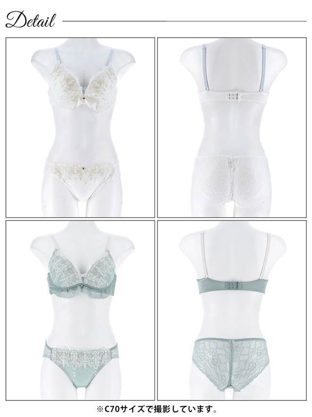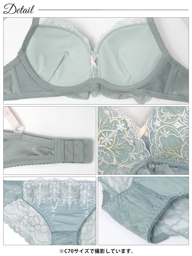 ダスティブルームエンブロイダリー育乳脇高ブラジャー&バック透けフルバックショーツ