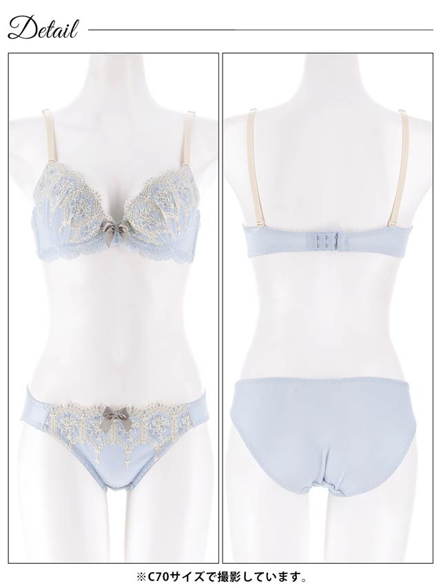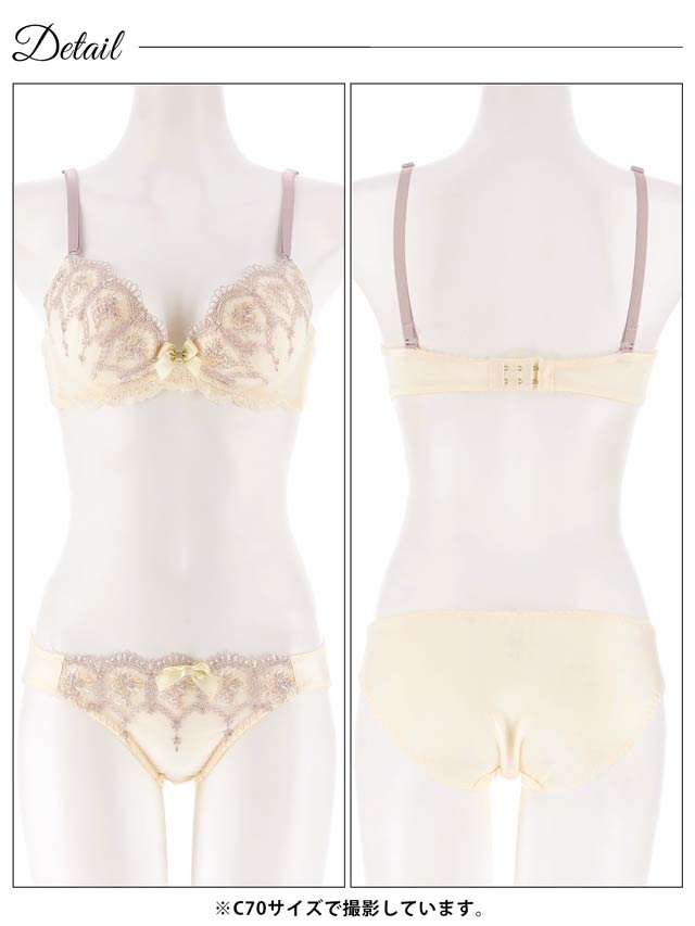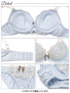 フロレゾンローズレース育乳脇高ブラジャー&サイド紐バック透けフルバックショーツ