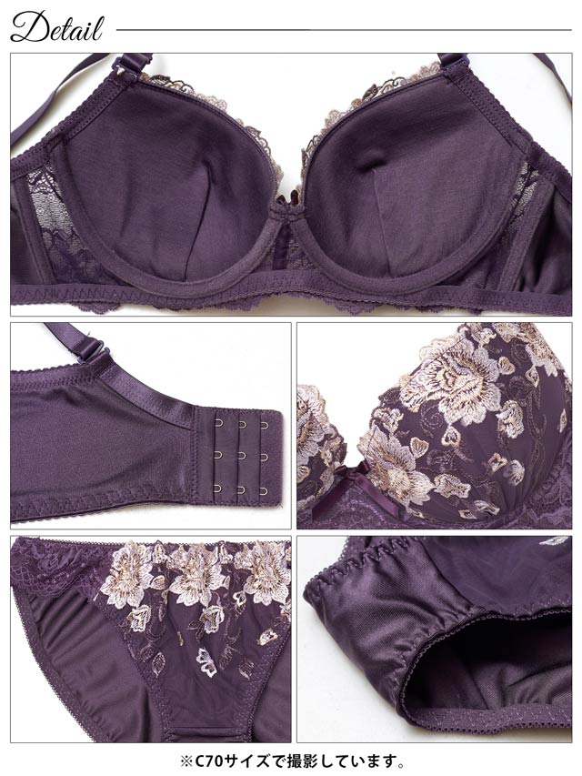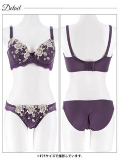 2/25新作!【EFサイズ】アリュールブロッサムエンブロイダリー育乳脇高ブラジャー&フルバックショーツ[大人気]