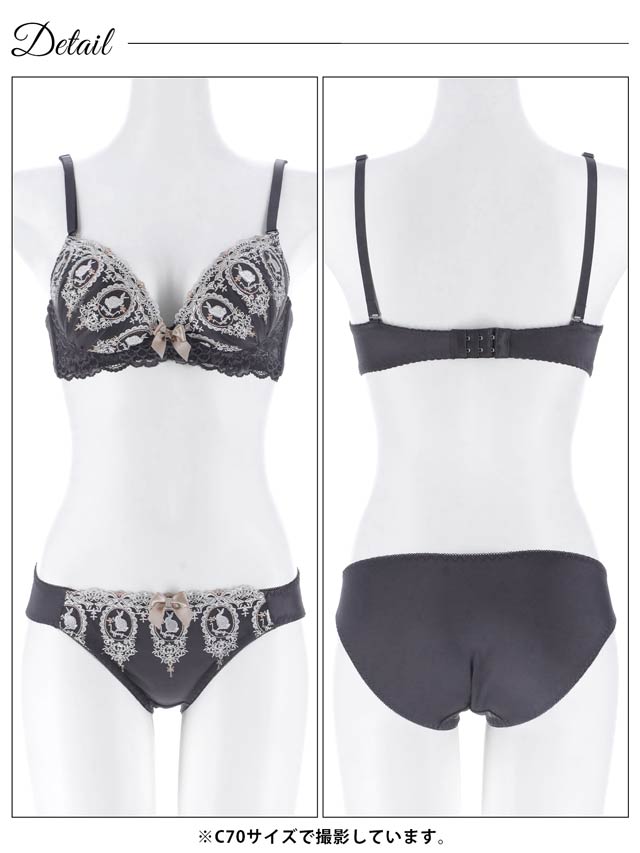 ダスティブルームエンブロイダリー育乳脇高ブラジャー&バック透けフルバックショーツ