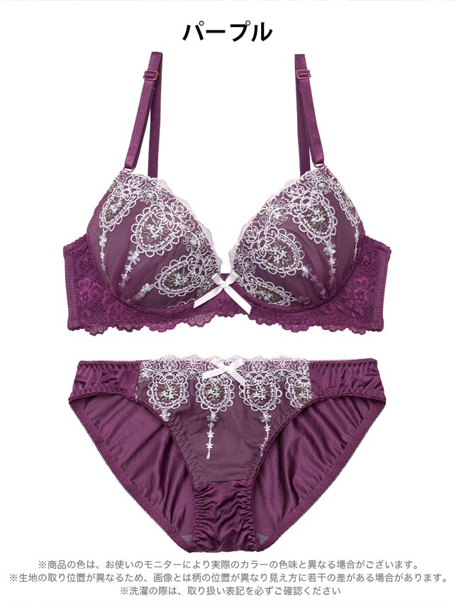 2/14再販!ダスティブルームエンブロイダリー育乳脇高ブラジャー&バック透けフルバックショーツ[激売れ]