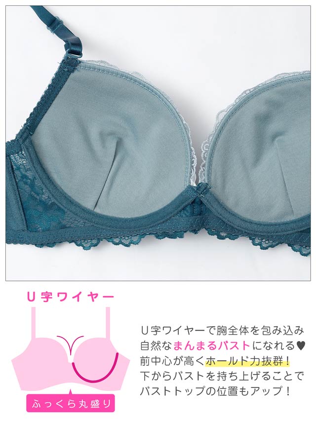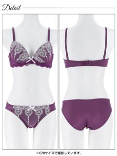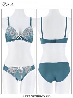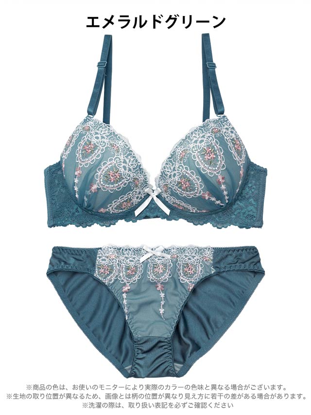 ダスティブルームエンブロイダリー育乳脇高ブラジャー&バック透けフルバックショーツ