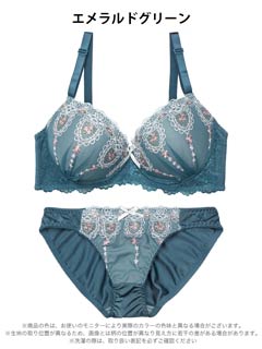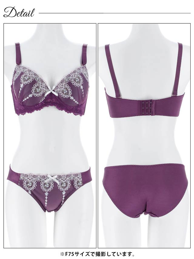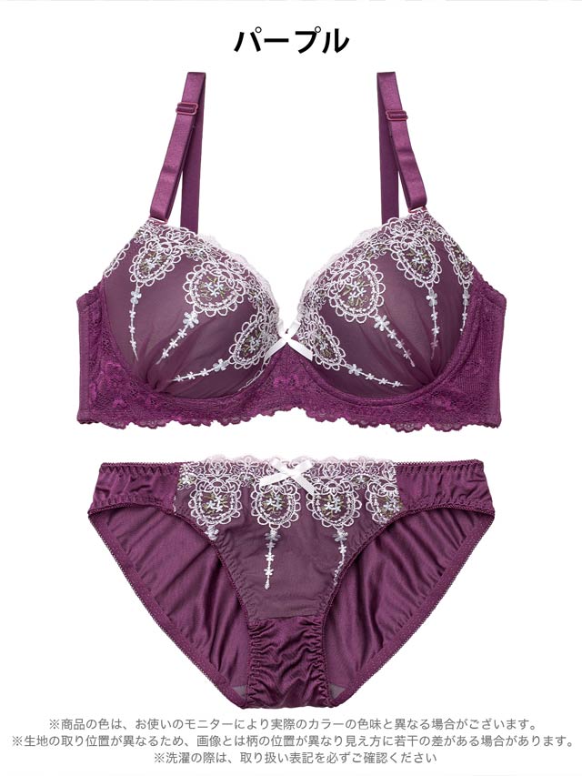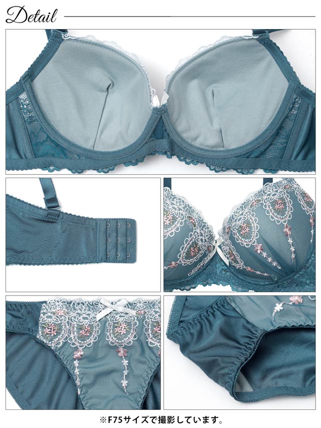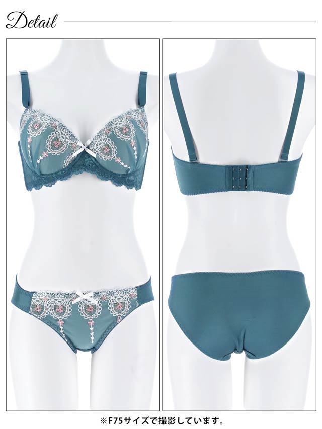 ダスティブルームエンブロイダリー育乳脇高ブラジャー&バック透けフルバックショーツ