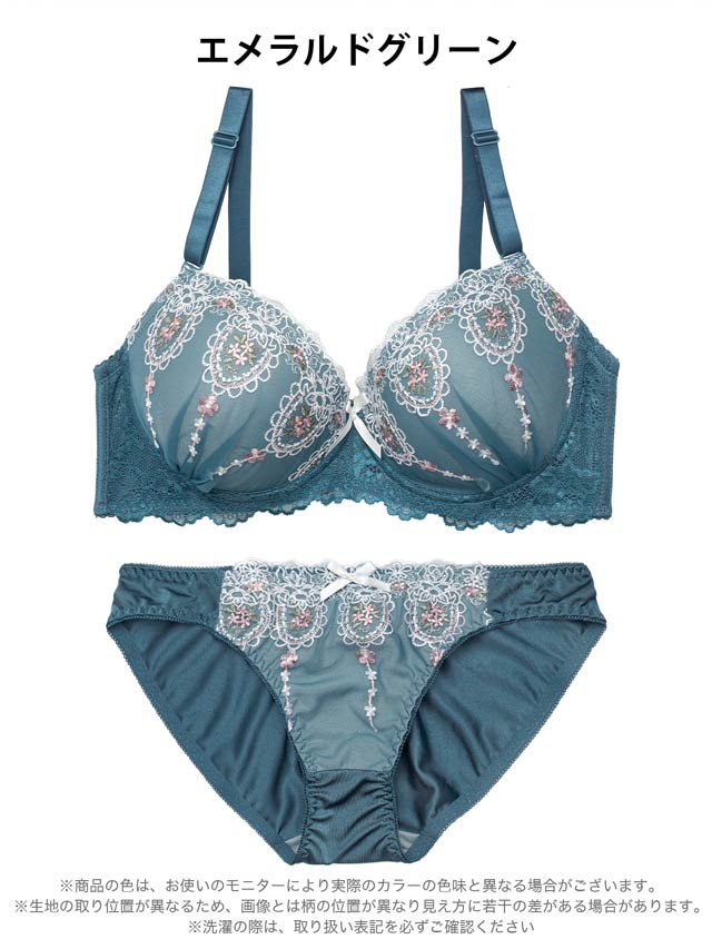 2/25新作!アリュールブロッサムエンブロイダリー育乳脇高ブラジャー&フルバックショーツ[激売れ]