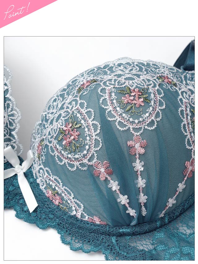 2/14再販!ダスティブルームエンブロイダリー育乳脇高ブラジャー&バック透けフルバックショーツ[激売れ]