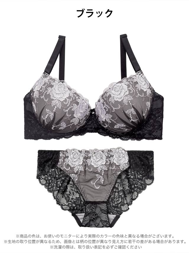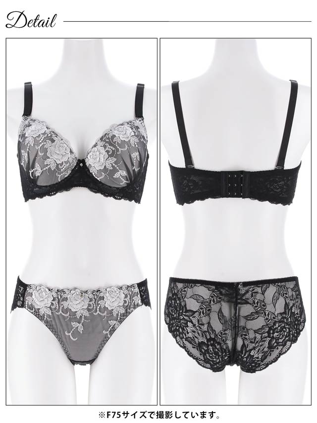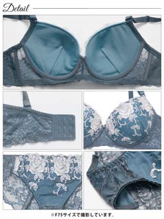 大判フラワー総レース育乳脇高ブラジャー&バック透けフルバックショーツ