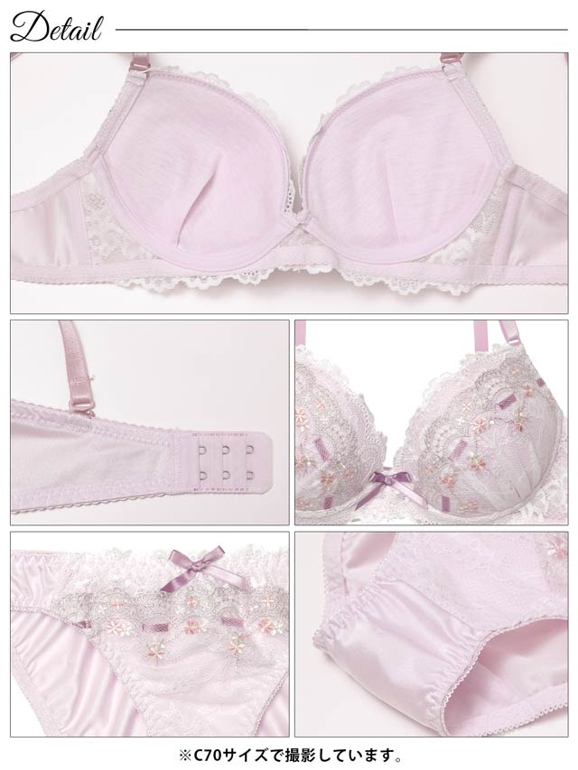 ゴージャスフラワーパール育乳脇高ブラジャー&フルバックショーツ