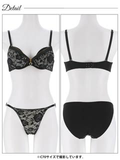 オールレースカットストリング育乳脇高ブラジャー&バック透けフルバックショーツ