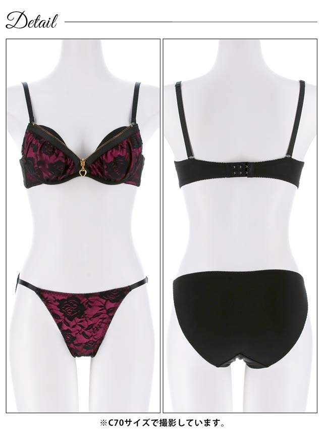 3/6新作!グラマラスローズファスナーブラジャー&フルバックショーツ[激売れ]