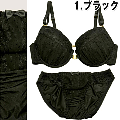 ふゎふゎの触り心地の生地を使ったブラ♪フロントホックなので両サイドから胸を寄せ集め、簡単に谷間が作れちゃいます( ´艸`)背中の中央にはGOLDリング、ブラベルトは総レースで背中がガッツリ開いたデザインのお洋服にぴったり☆背中魅せが楽しめます♪ショーツは腰部分がレースになっていて、素肌がちょっぴり透けるのがSEXY(*≧ω≦)真ん中にはプチリボンも付いています?色気ムンムンな背中アピールするなら、このブラで決まり!!