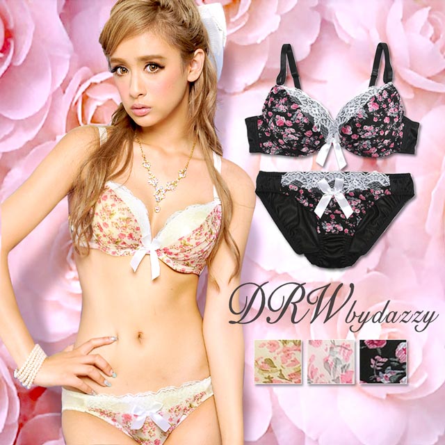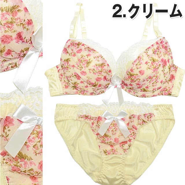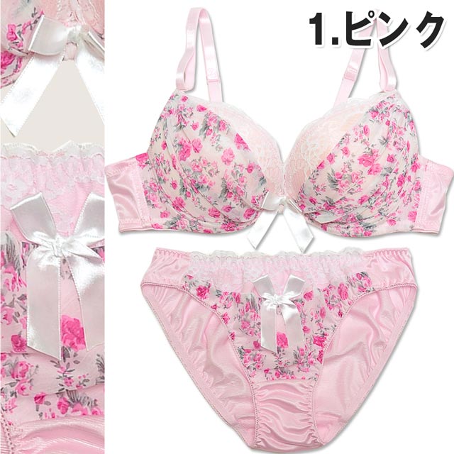 ロマンティックな雰囲気漂う花柄ブラセット??バストを包み込むようにふんわりギャザーを寄せました♪チラ魅せしたレースで可愛さ溢れる谷間に?バストにぴったりFITする厚手のパッドが内蔵されています!!ショーツも同柄生地でプチリボン付き♪今夜は彼にこのランジェで甘えてみては!?(〃∇〃)