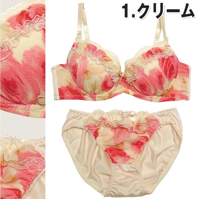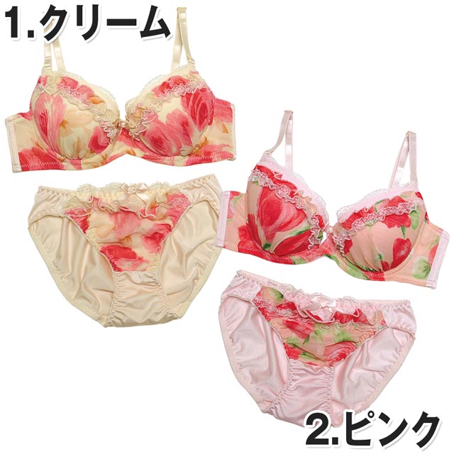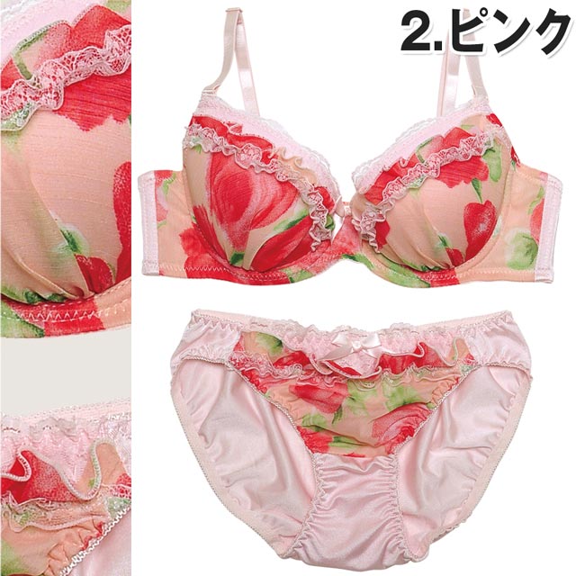 少女の様な可愛さを引き立てる花柄ブラで彼の心を狙い撃ち!!!フェミニンな甘めカラー×レースの王道モテデザイン?(艸゜Д`*●)。oフリルレースがより可愛さを出し、大きめの花柄プリントが目を引きます↑↑ブラサイドがシフォンでちょっぴり素肌が透けてSEXY♂♂ショーツにも甘フリルがふんだんに装飾されてとっても可愛いよ♪♪彼もゾッコンになるSweetランジェでカワイく甘えてみてはいかが??(●≧ω≦)っ))?
