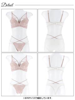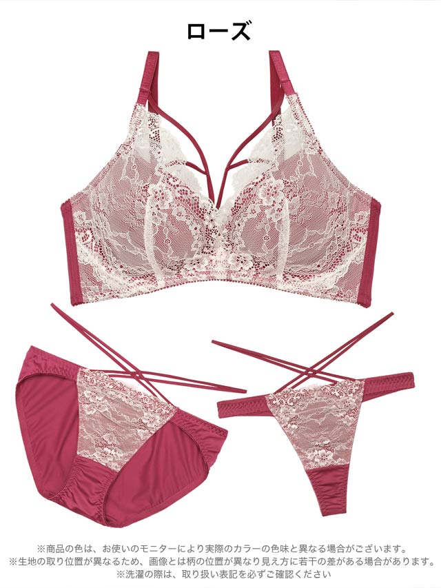 フロレゾンローズレース育乳脇高ブラジャー&サイド紐バック透けフルバックショーツ