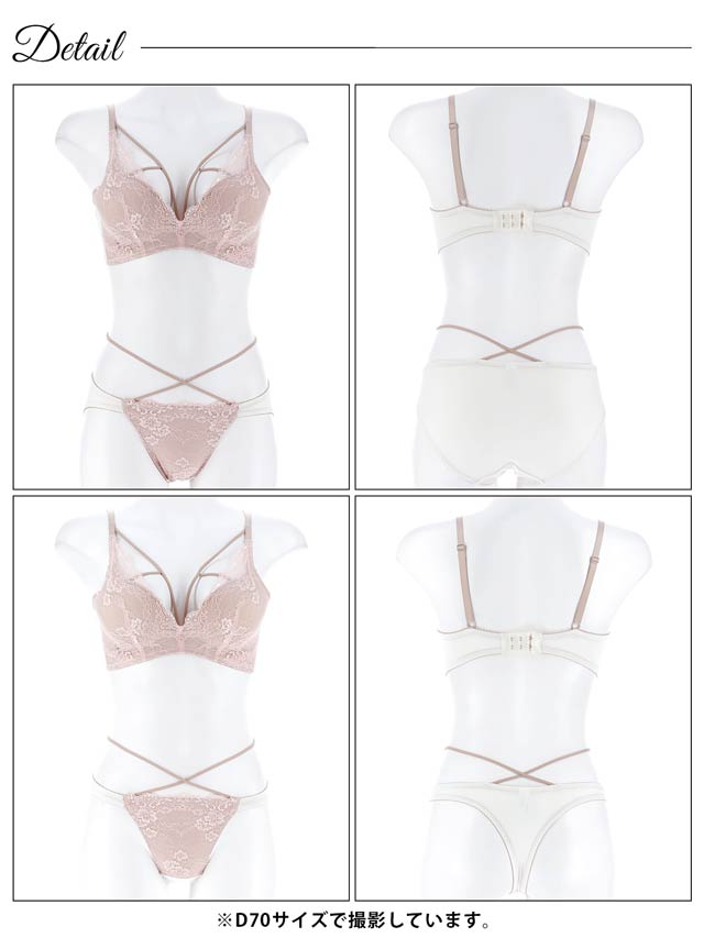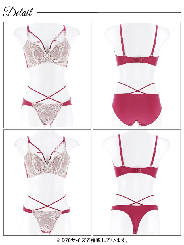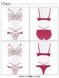 オールレースカットストリング育乳脇高ブラジャー&バック透けフルバックショーツ