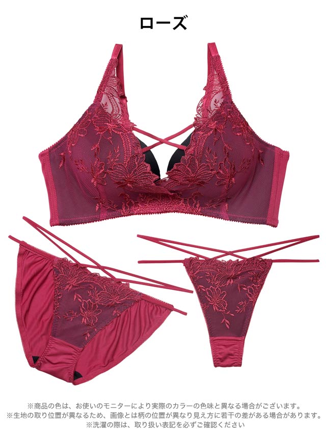 【3点セット】【GHIサイズ】ディープクイーンローズ育乳脇高ブラジャー&バック透けフルバック&Tバックショーツ