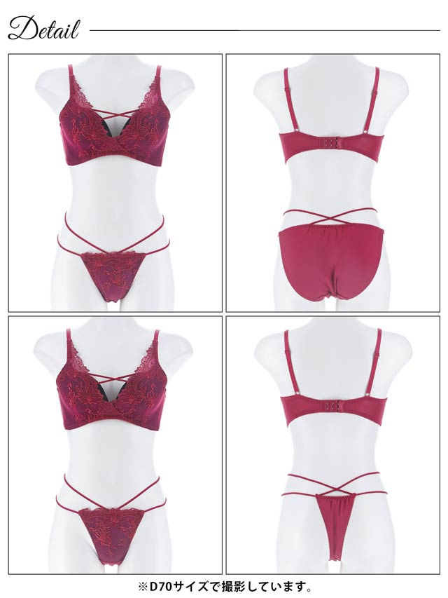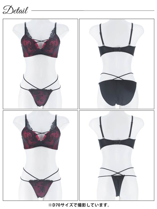 2/3再販!【三上悠亜着用】【3点セット】【GHIサイズ】ディープクイーンローズ育乳脇高ブラジャー&バック透けフルバック&Tバックショーツ[大人気]