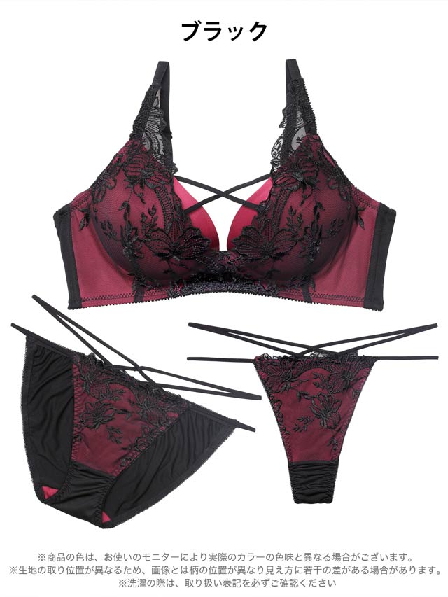 2/3再販!【三上悠亜着用】【3点セット】【GHIサイズ】ディープクイーンローズ育乳脇高ブラジャー&バック透けフルバック&Tバックショーツ[大人気]