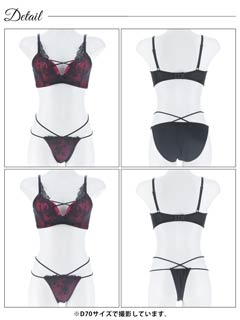 【3点セット】【GHIサイズ】ディープクイーンローズ育乳脇高ブラジャー&バック透けフルバック&Tバックショーツ
