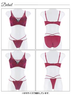 オールレースカットストリング育乳脇高ブラジャー&バック透けフルバックショーツ