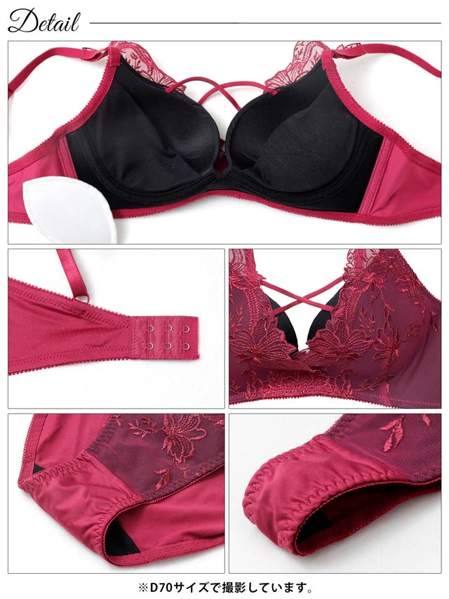 ダスティブルームエンブロイダリー育乳脇高ブラジャー&バック透けフルバックショーツ