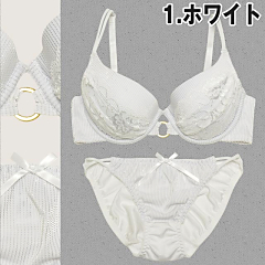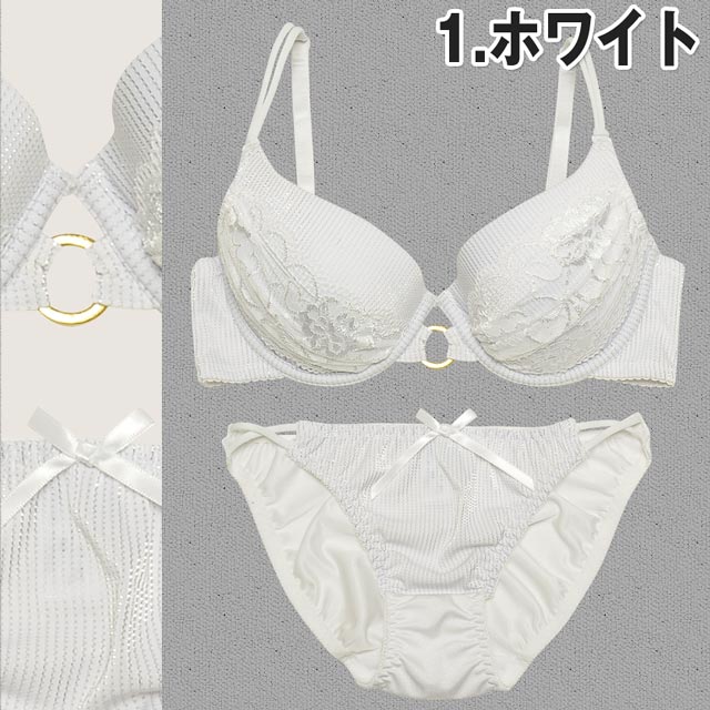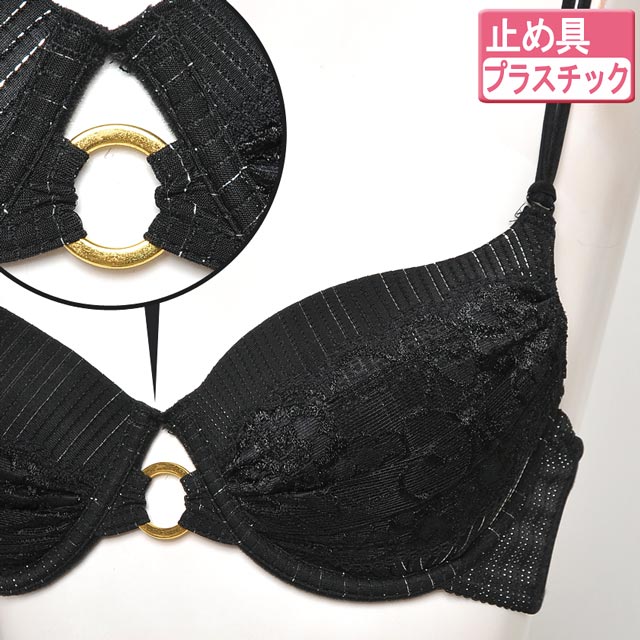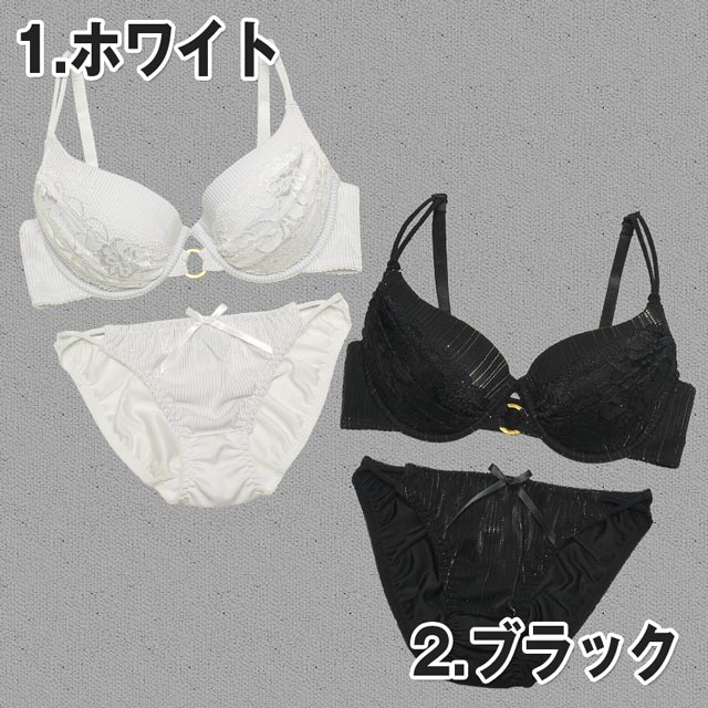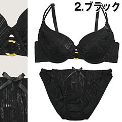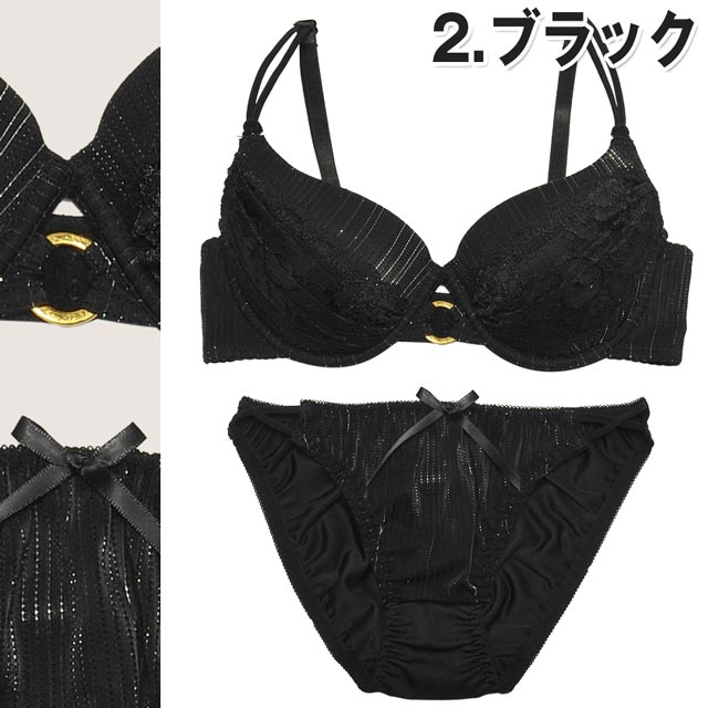 COOLなオーラを放つストライプ柄のブラセット★キラッと輝くラメ入りストライプでよりかっこいい演出!!さらにレースを被せて色気も漂う♪胸元にはGOLDリングがついていて、サイドからバストを引き寄せ谷間MAKE??腰元は2本の紐がクロスしていてSEXY★