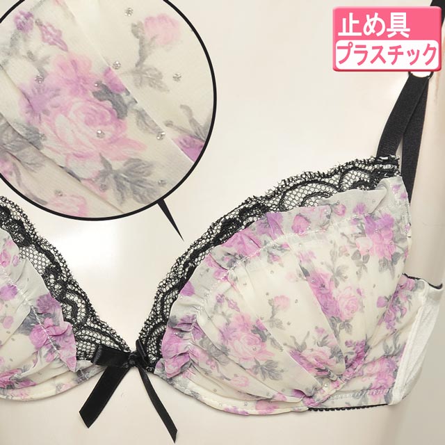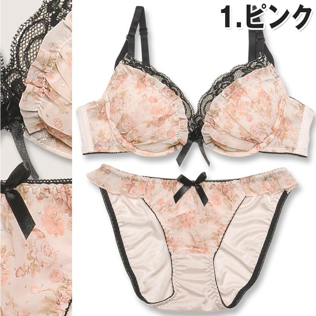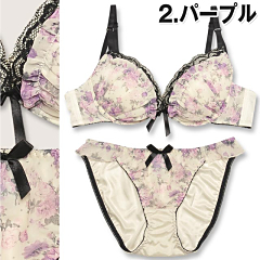 エレガントなCUTEランジェが登場?白地に優しいカラーで咲き誇るバラがポイント♪胸から覗くブラックレースがちょっぴりSEXY(゜o゜)?トライアングルストラップで脇に流れるお肉もしっかりバストにイン!!柔らかく付け心地の良いブラです♪♪ショーツサイドはフリルになっていてほんのり素肌が透けちゃいます?