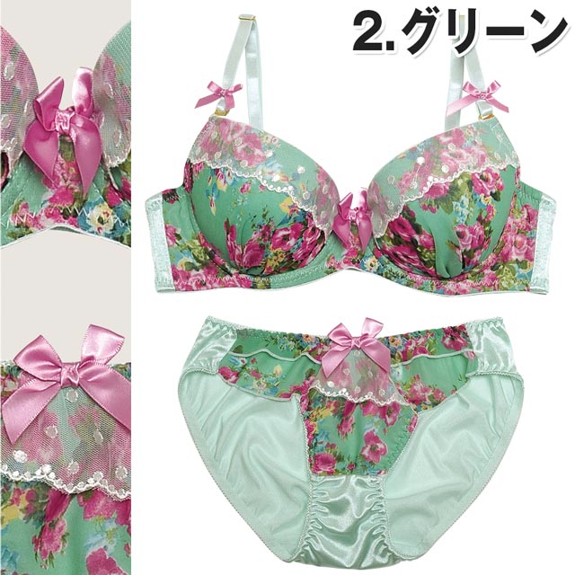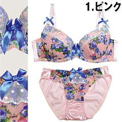 大人Ladyな雰囲気のクラシカルROSEブラが登場♪カップにはドット柄レースをかぶせて可憐に演出?胸元やストラップにはプチリボンを飾ってフェミニンムード盛り上がる??ショーツは透け感のあるシフォンの2段フリルでドキっとさせる色気も有ります♪