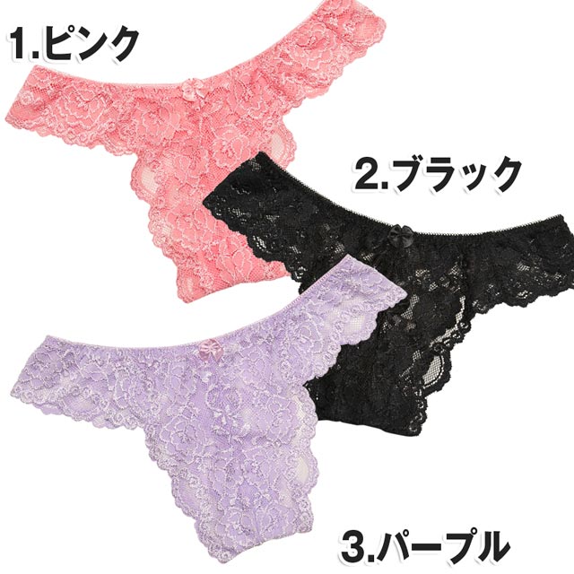 【3点セット】【GHIサイズ】グロスフラワーエンブロイダリーブラジャー&フルバックショーツ&Tバックショーツ