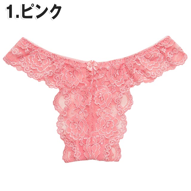 オールレースカットストリング育乳脇高ブラジャー&バック透けフルバックショーツ