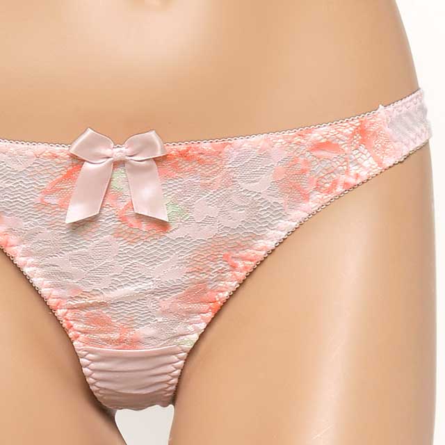 オールレースカットストリング育乳脇高ブラジャー&バック透けフルバックショーツ