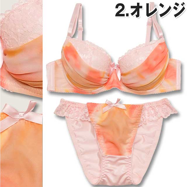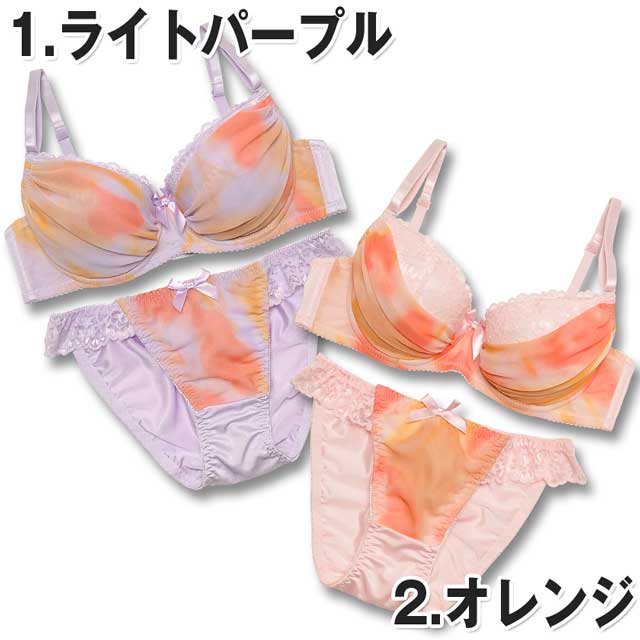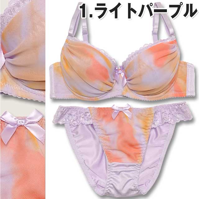 幻想的な淡いカラーのタイダイ柄をレースのカップにふんわり被せた、フェミニンブラ♪柔らかいシフォン素材が谷間を優しく包み込み…まぁるいカップとWパッドで綺麗な谷間が作れます☆胸元にはプチリボンを飾りました??ショーツはサイドがレースで素肌が透けちゃう♪急な夜にも…(*^_^*)思わず彼も惑わせるおすすめのタイダイ柄ブラセットです☆彡
