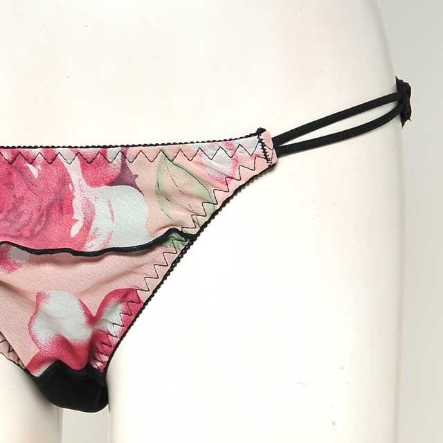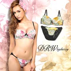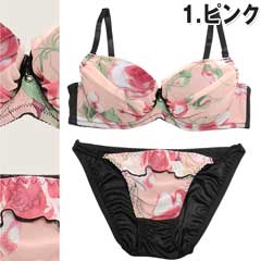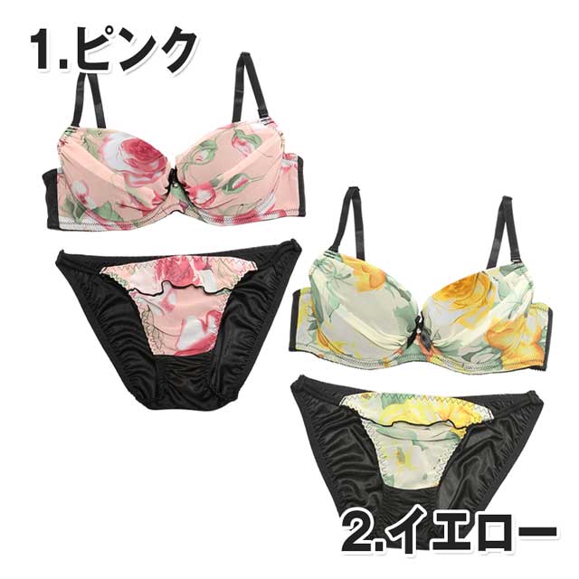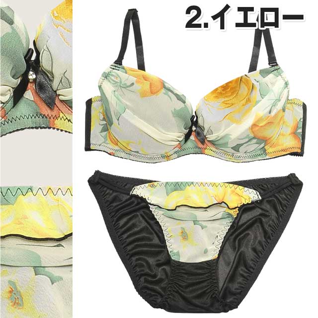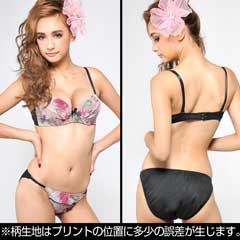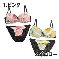 大人上品の大判花柄ランジェ★ブラックベースに透け感のある大人な色合いの花柄シフォンを重ねた上品デザインのブラ★☆胸元にはリボン+ストーンチャーム付きで、谷間に目がいっちゃう★ショーツはフリル付きで、さらに!!ショーツサイドの紐は2本ラインで足長効果+とってもSEXY!!!!いつも可愛い系ランジェを着ているあなたは、今夜は上品ランジェを着て大人な雰囲気にイメチェンしてみては?♪