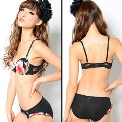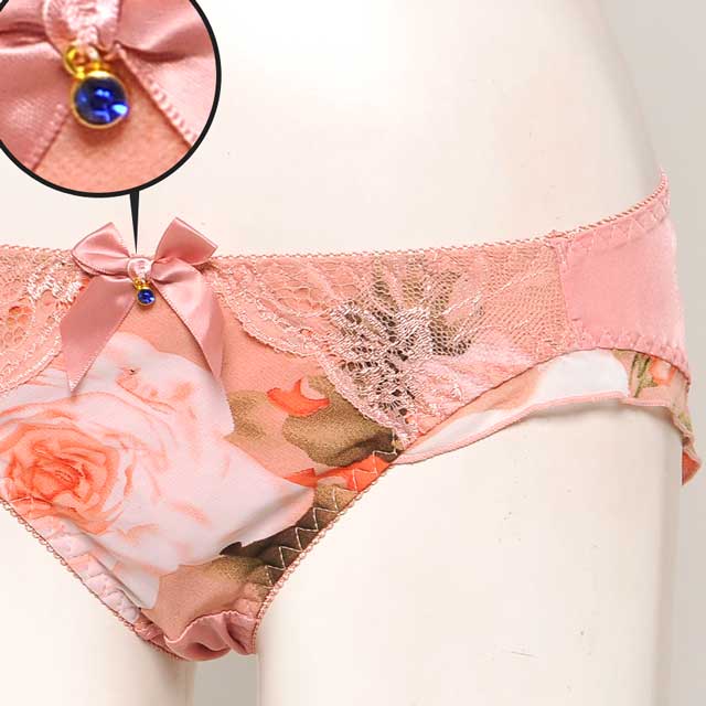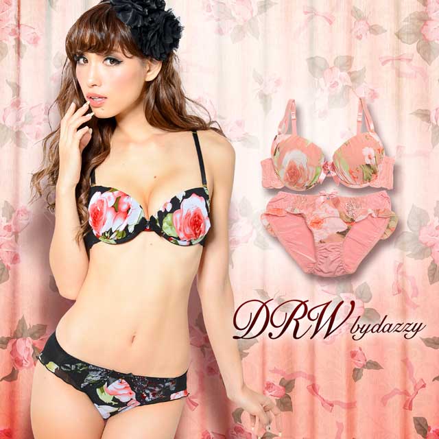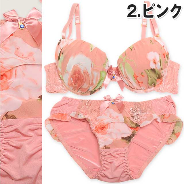 3色の薔薇を並べたプリントが可憐なピュアさを惹きたてるシフォンブラ★立体ドットを施してさらに可愛さアップ♂カップアンダーには、シフォン×レースのWフリルを飾って華やかに♪内蔵&付属のWパッドと縦に入ったギャザーでまんまるの盛り胸がか簡単に演出できちゃいます★ショーツサイドはヒラリと揺れるフリルから肌を透けさせてちょっぴりセクシー!!
