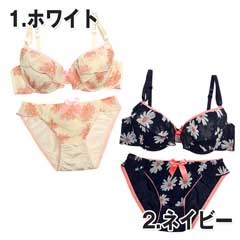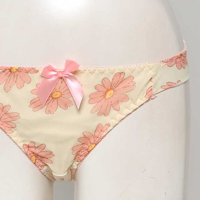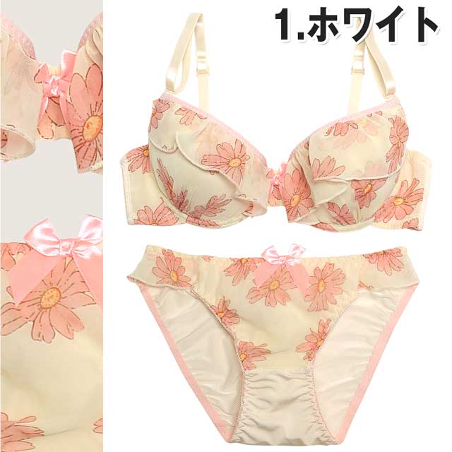 他の子とは被りたくない…そんなあなたにおすすめの超レア柄が登場★『コスモス柄』は他の花柄とは違って、上品さアップ↑↑明るめのカラーでリボンやパイピングのデコレーションをほどこし可愛さもプラス♪♪胸元には大胆に飾られたフリルで、視線は思わずバストに集中!!ショーツの両サイドはフリルで飾って、チラッと見える背肌がSEXY(^^♪