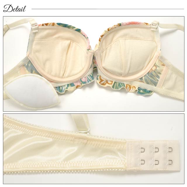 サマーボタニカル柄フロントホックブラジャー&バック透けフルバックショーツ[プチプラ]