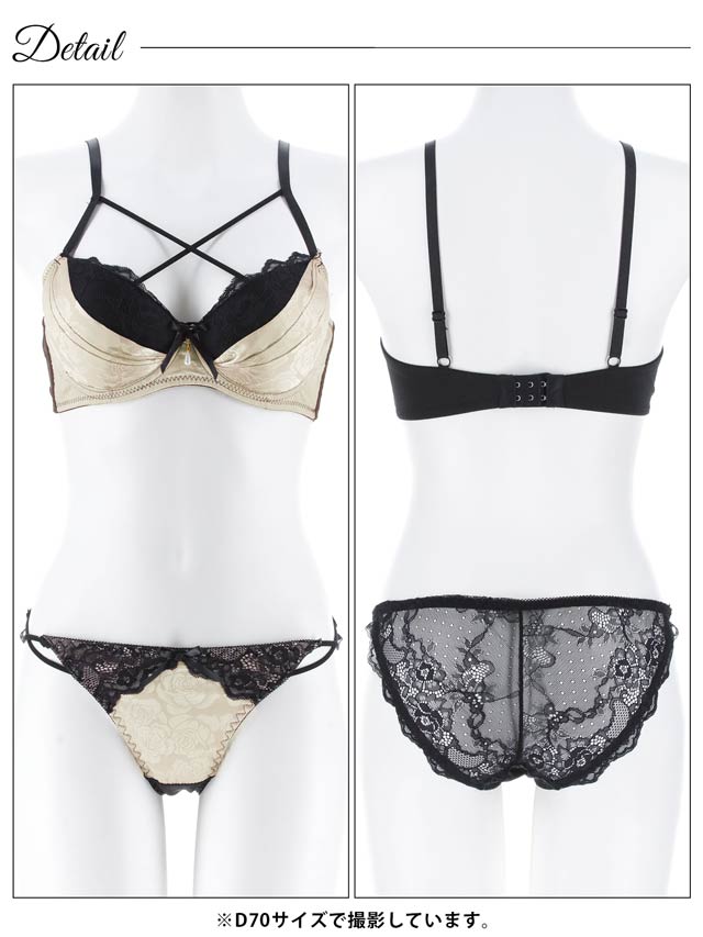 フロレゾンローズレース育乳脇高ブラジャー&サイド紐バック透けフルバックショーツ