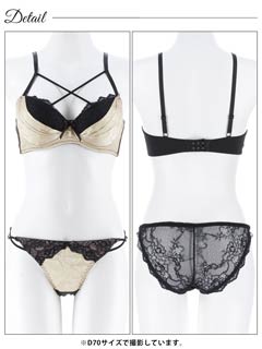 オールレースカットストリング育乳脇高ブラジャー&バック透けフルバックショーツ
