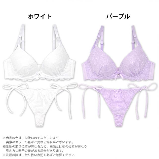 ナチュラルフラワー刺繍ブラジャー&サイド紐Tバックショーツ[プチプラ]