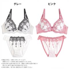 【ノンワイヤー】シャンデリア刺繍チュールブラジャー&フルバックショーツ[プチプラ]