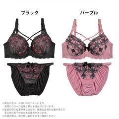 【EFサイズ】レイヤードフラワーエンブロイダリーブラジャー&フルバックショーツ