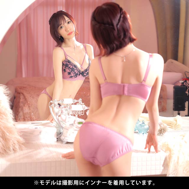 岸明日香着用【Reinest】フェミニンフラワーブラジャー&バック透けTバックショーツ