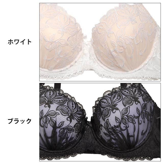 ラグジュアリーフラワーレース育乳脇高ブラジャー&バック透けフルバックショーツ[プチプラ]