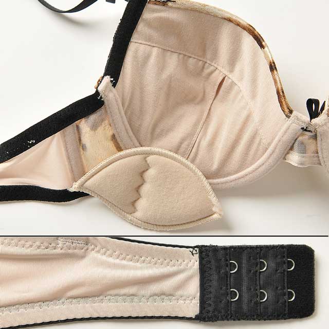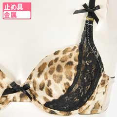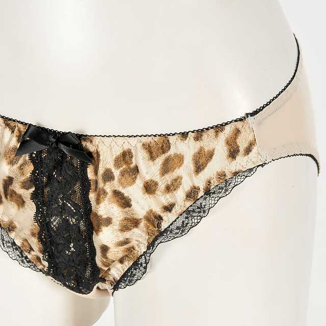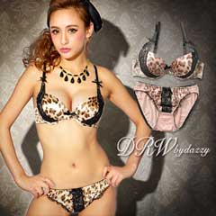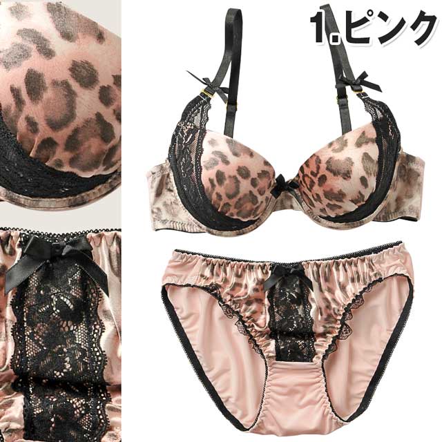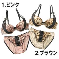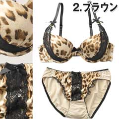 レオパ柄サテン×黒レースブラジャー&ショーツ/SEXY