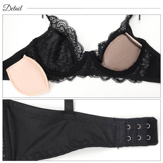 オールレースカットストリング育乳脇高ブラジャー&バック透けフルバックショーツ